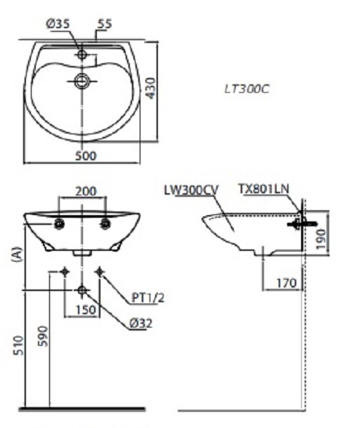 Dưới đây là bản vẽ kỹ thuật Lavabo TOTO LT300C#W giúp bạn dễ dàng nắm rõ kích thước, cấu tạo và vị trí lắp đặt, đảm bảo thi công chính xác và an toàn.