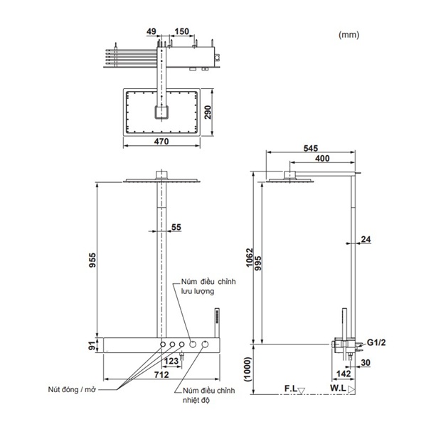 - Bát sen vuông cỡ lớn (470 x 290mm): Đem lại trải nghiệm tắm thư giãn, bao phủ toàn thân như dưới dòng mưa tự nhiên.