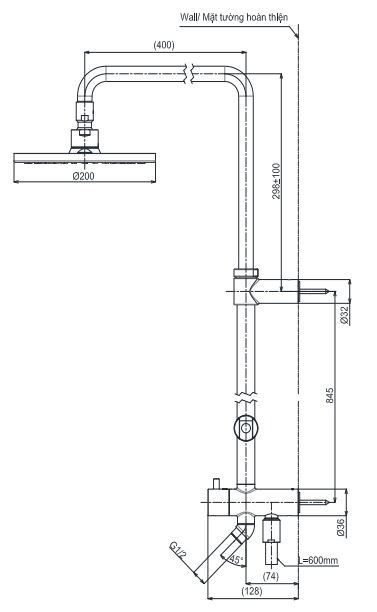 Bản vẽ kích thước sen tắm cây Toto TBW07005A